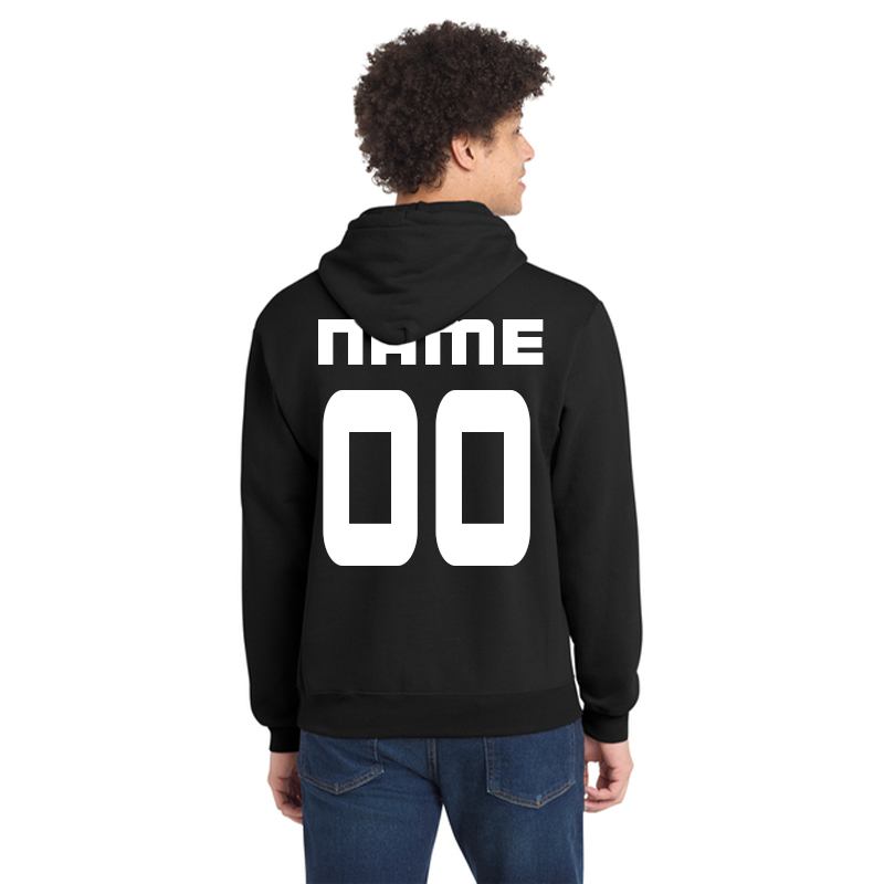 Show your team pride in this Black mid-weight fleece hoodie featuring the Jedi Knights logo on the chest. The back can be customized with your player’s name and number in matching team colors. Built for comfort and style. Perfect for game days, travel, or just staying warm around town.